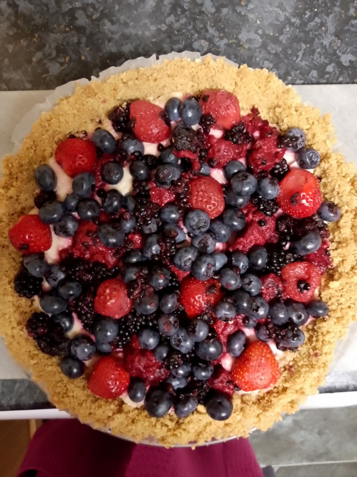 Fresh from my Garden I made this tart using fruit which I have growing in my garden. I added Blackcurrants from my Blackcurrant bush, Blueberries from my own Blueberry bush and blackberries from the Blackberry bush at the end of my garden. It just seemed an ideal way to make use of this year's crop of home grown fruit. Along with the fresh Raspberries from my local supermarket.