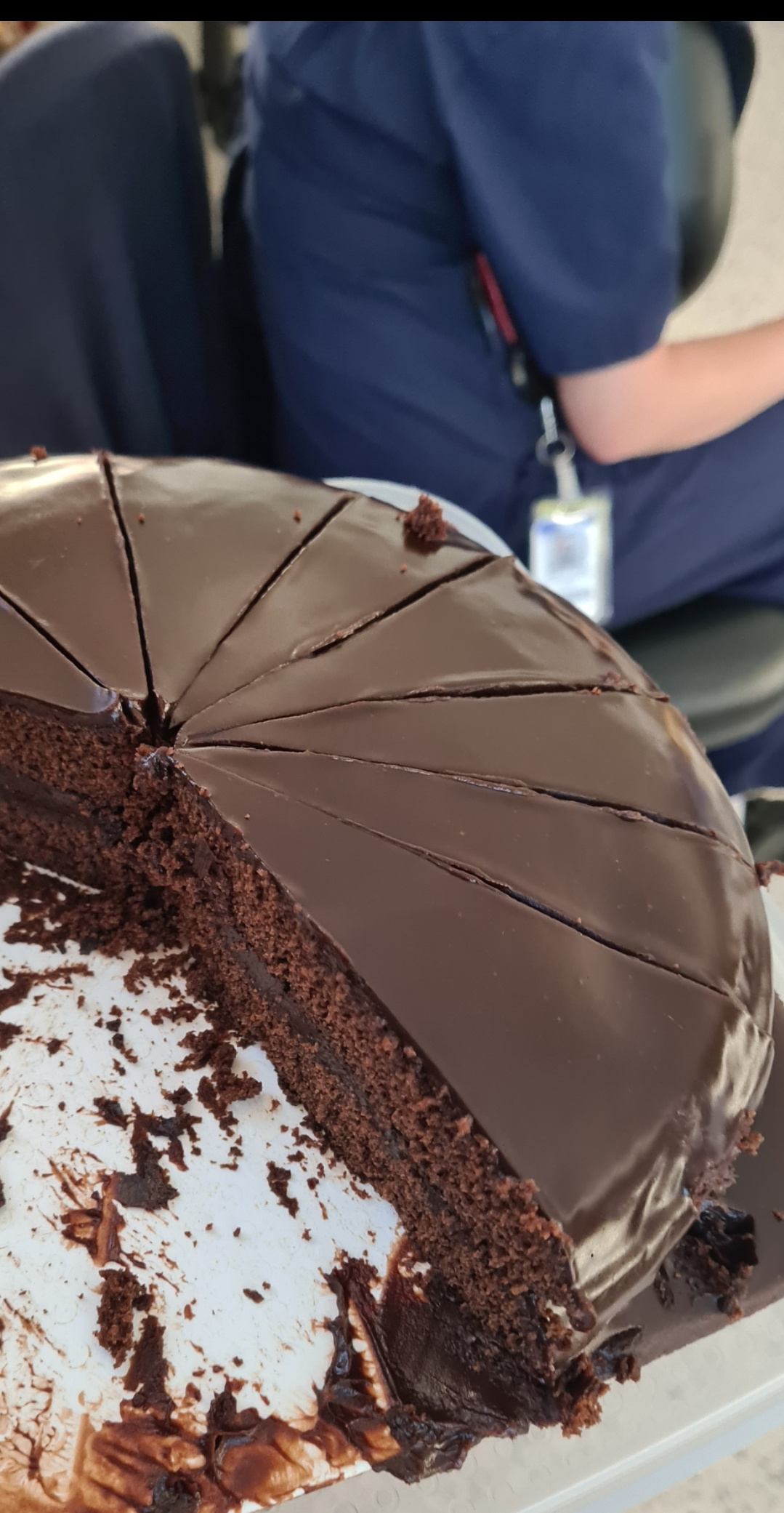 A sneaky pic before us nurses devoured the whole thing! (Couldn't resist cutting in before taking a picture)