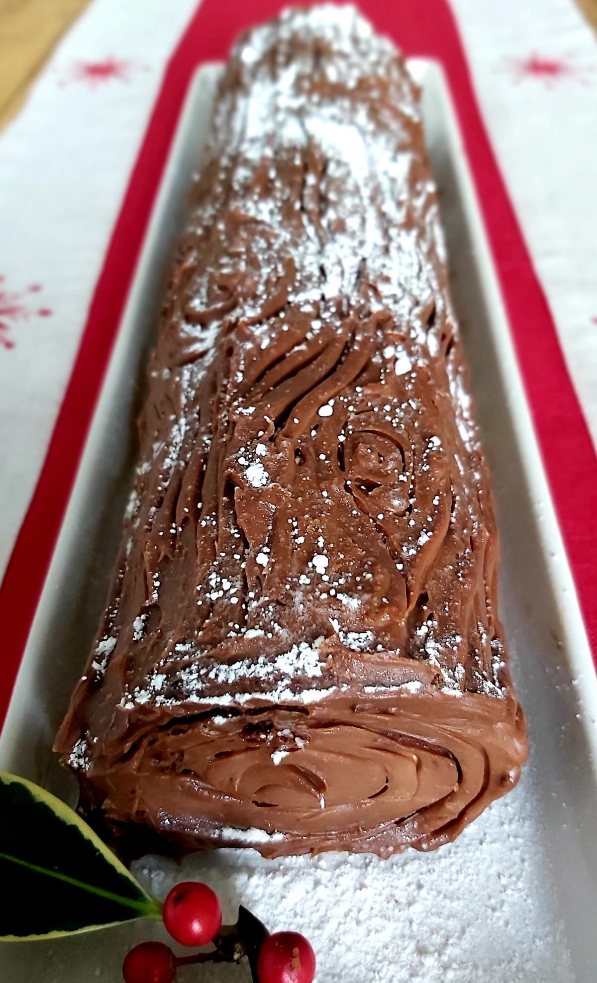 This is the first time I have made a yule log .... I was looking for a gluten free festive cake. I put fresh cream in the middle and chocolate ganache on the outside. The sweetcorn holder was a great tip! I will definitely be making this again.