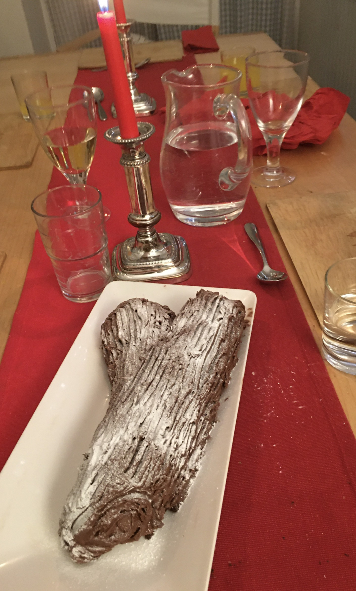 Just before the log was sawn up and demolished by hungry grandchildren. A great alternative to Christmas pudding for people who don’t like heavy fruit laden desserts.