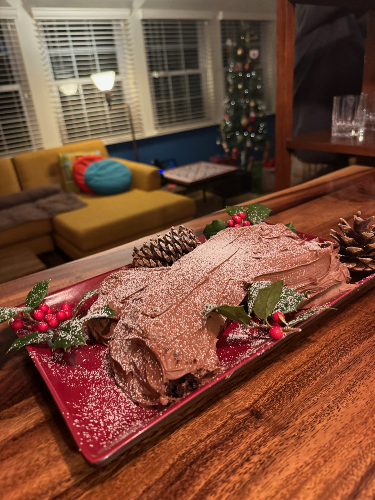 Made it according to the recipe as it is perfect on its own. However, it was garnished with fresh holly and pine cones from my yard.