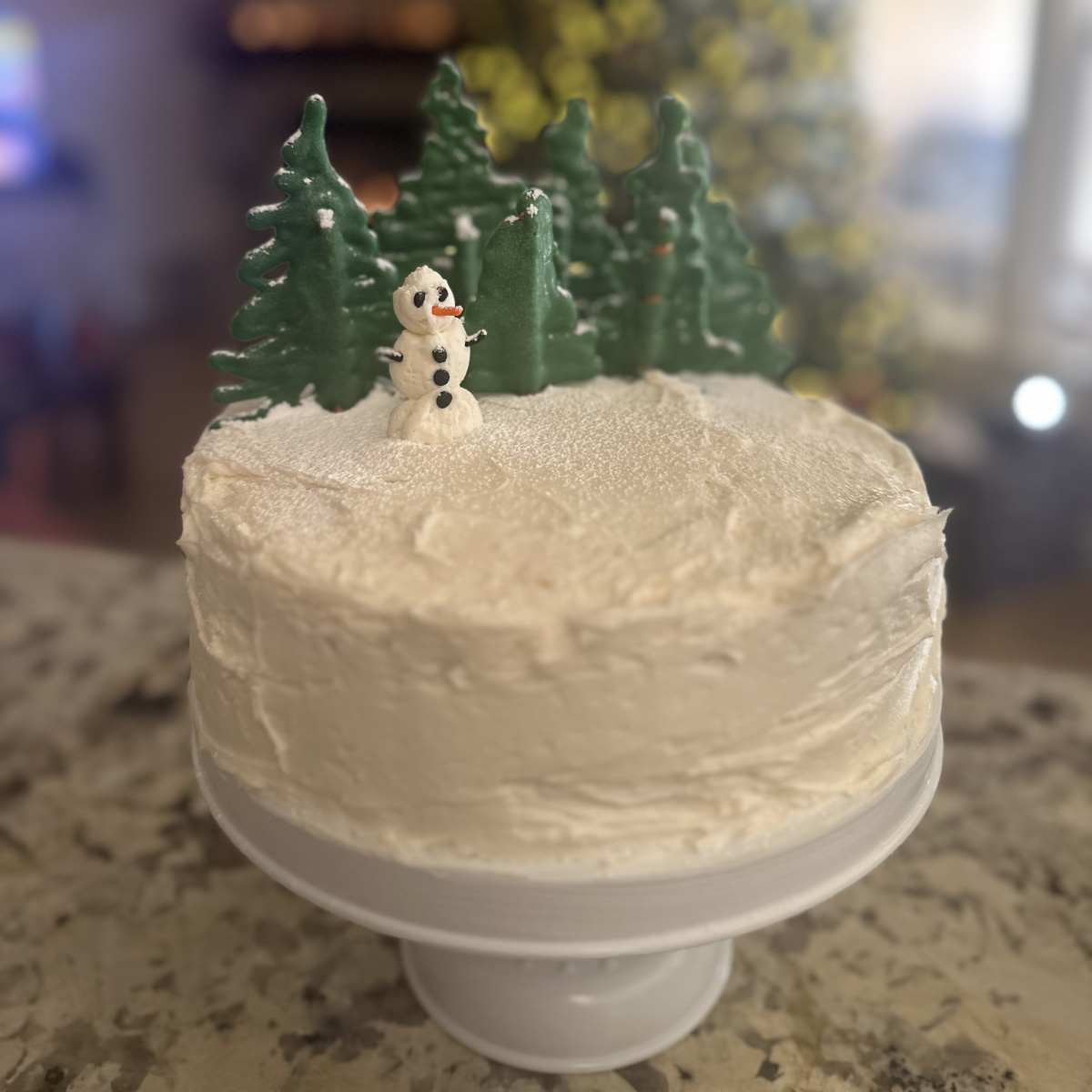 My 8 year old daughter & I made this cake together. Vanilla cake is her favorite. It was her idea to make a buttercream snowman to go with our candy melt forest & he was as delicious as he was adorable!