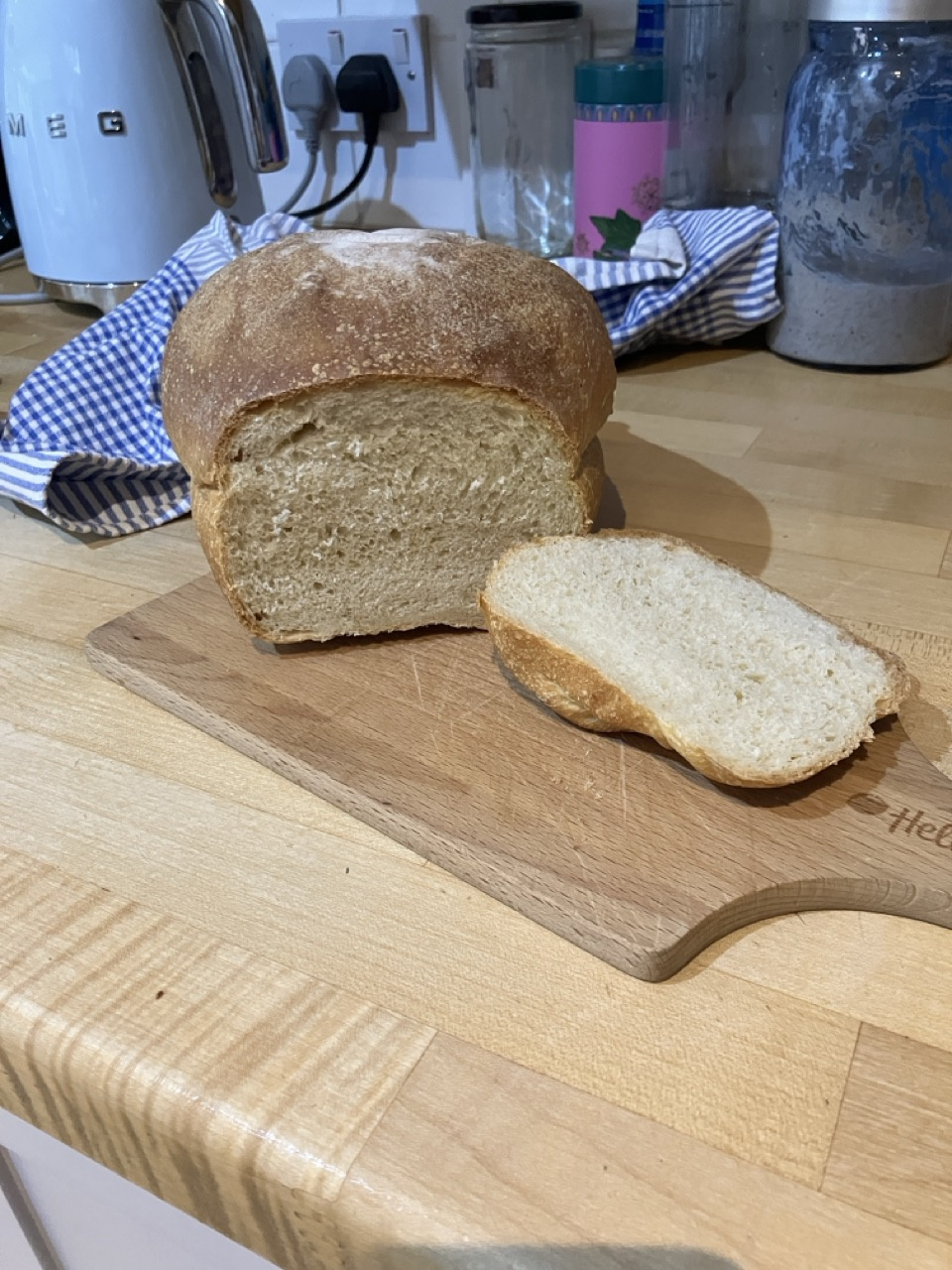 Sadly used a silicone baking tin which couldn’t quite take the rise so went wide not high but delicious and good toast too.
