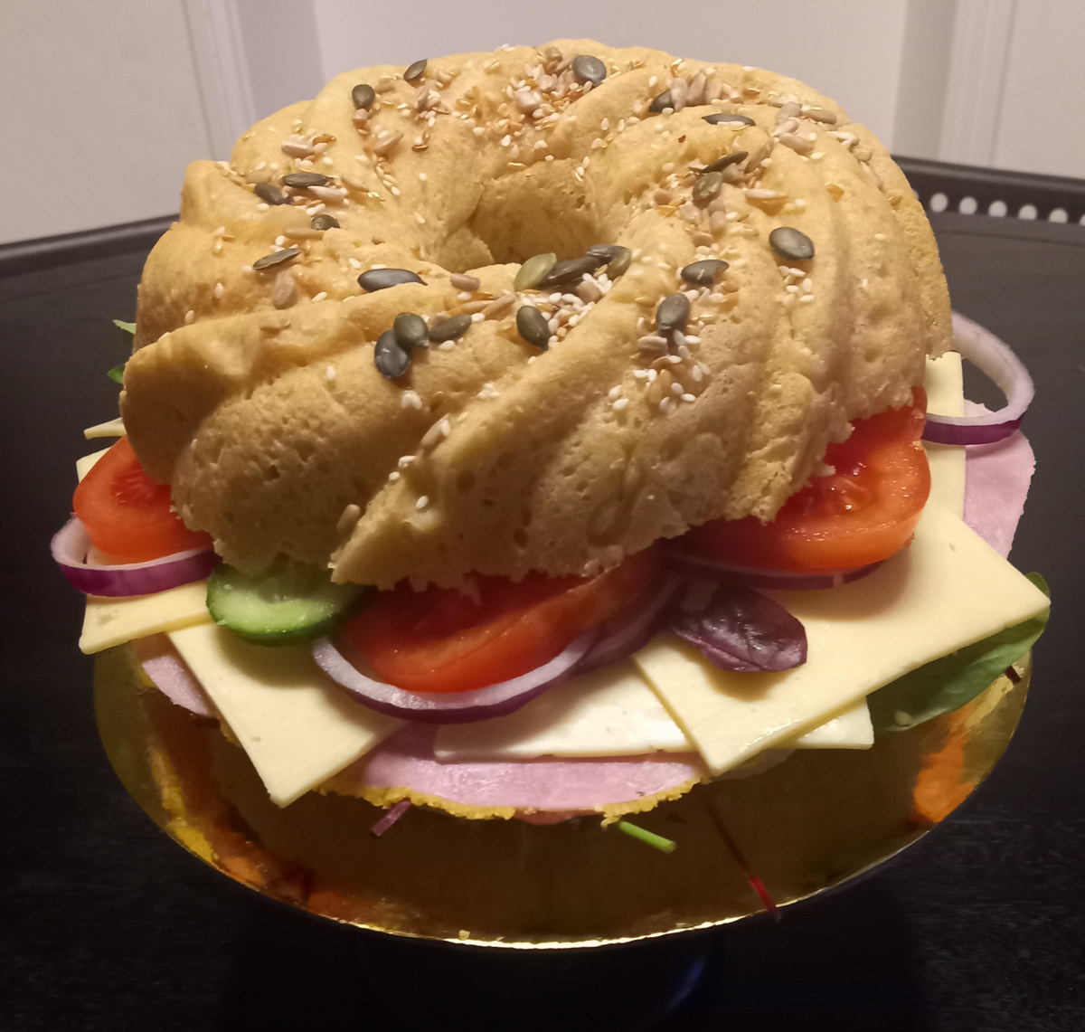 Nigella's Old fashioned Sandwich Loaf recipe baked in my Bundt Tin meant tweaking temperature and bake times with a 25 per cent extra ingredients. Brushed with melted butter and seeds only required a few layers of fillings to make a beautiful loaf for afternoon tea!