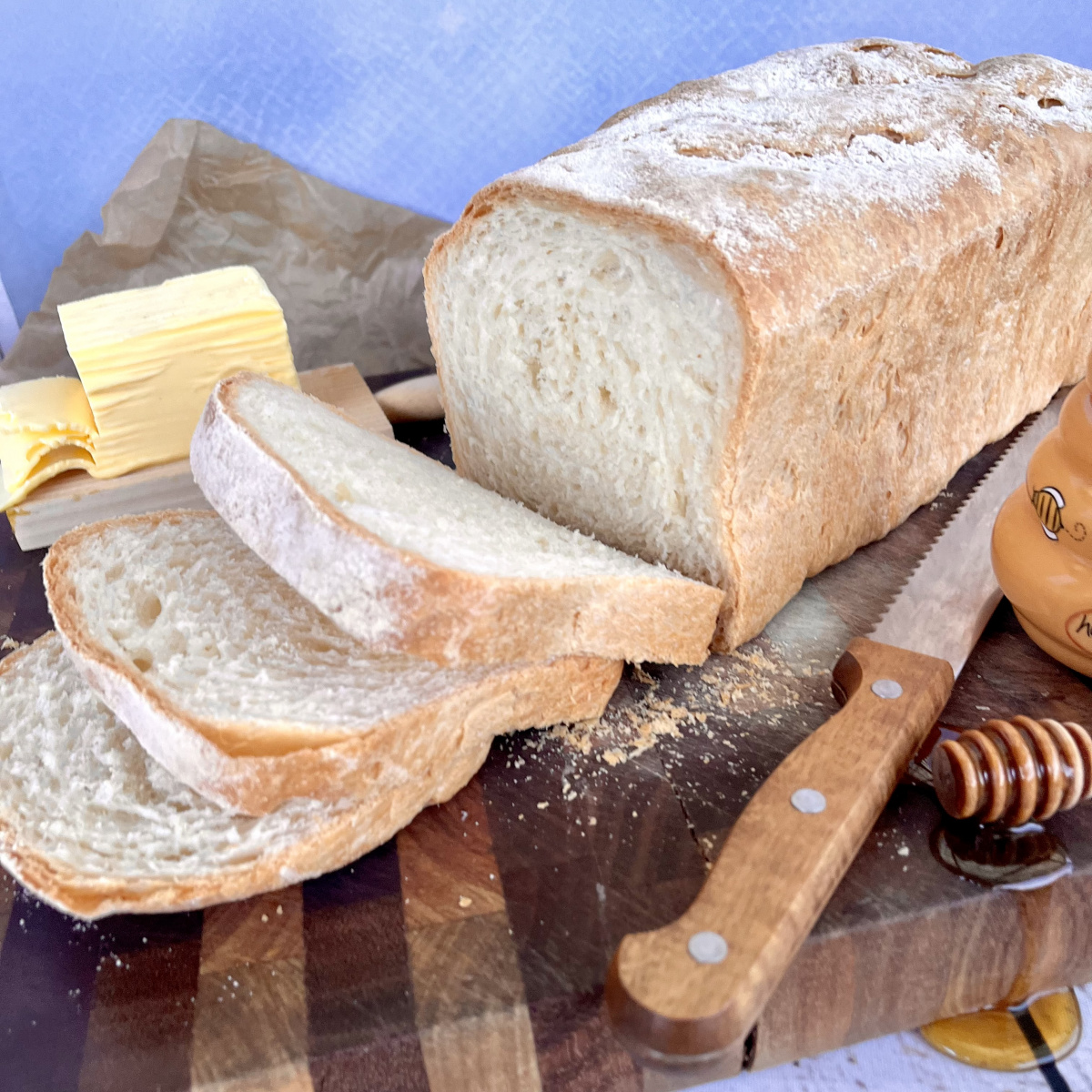 This sandwich loaf was so pillowy soft with a delicious crust. We enjoyed it slathered with lightly salted butter and a drizzle of wildflower honey. Seriously good!