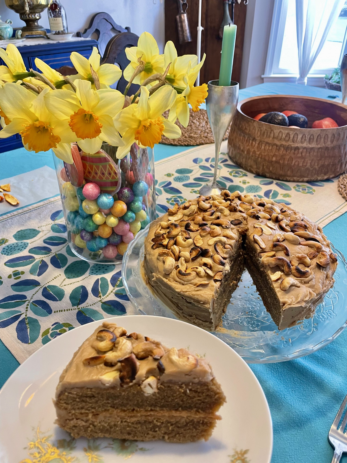 I was in search for the right cake for my birthday celebration and after this recipe the search is over!I felt brave and substituted walnuts with slightly burnt cashews and instant coffee with freshly brewed Napoli style espresso. This turned out as others say:” My guilty pleasures”, but not me. As Miss Nigella said in “Eat cook repeat”:” The only guilt one should feel is when you enjoying it without gratitude.” Thank you for inspiration!