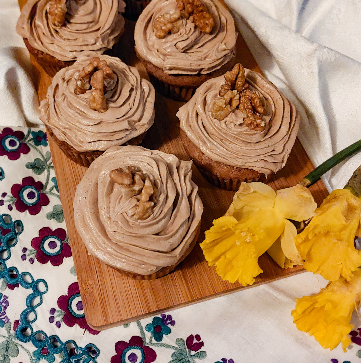 This month I turned Nigella’s Coffee & Walnut Cake into cupcakes instead of a layer cake—same flavors, just in a smaller package and easier to share at a family gathering. They were a hit! Rich, nutty, and topped with smooth coffee buttercream.