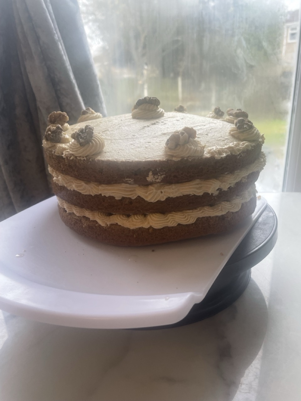 Coffee Walnut cake Piped between layers Coffee perfectly balanced In the cake added extra walnuts