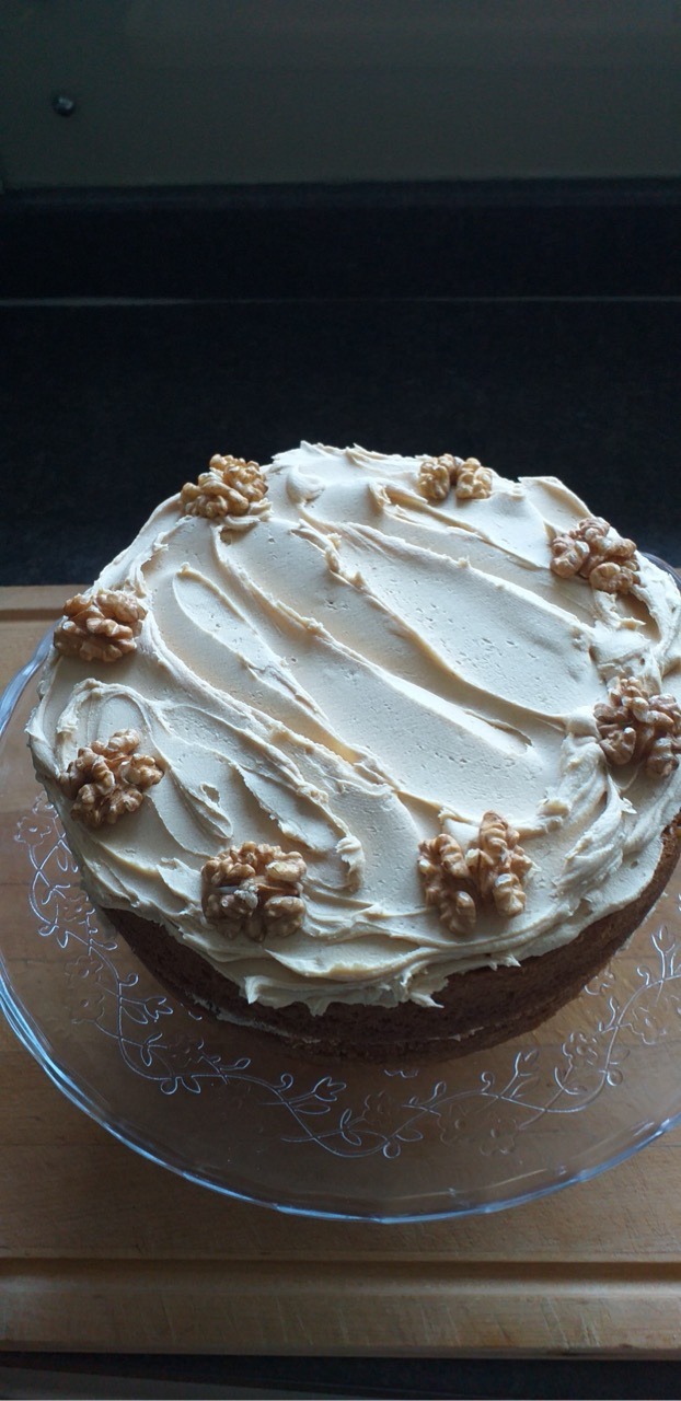 A coffee cake masterpiece! Can't wait to try it! Easy to make and decorate. Interesting to see how it differs from standard recipes. Blitzing the nuts and sugar together was an interesting variation. This won't last long in our house!