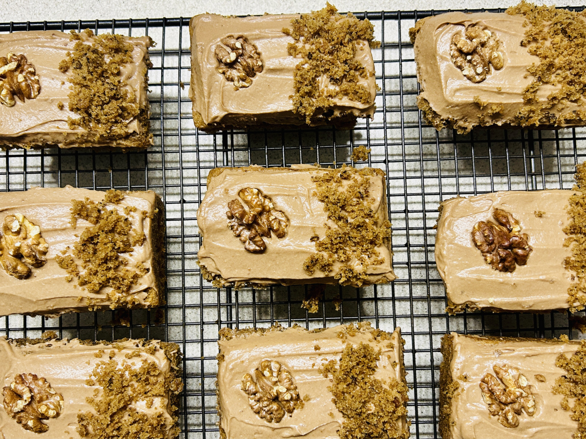 Coffee & walnut mini loaf cakes, buttercream, cake crumb and walnut perfect size to enjoy with a cup of tea or better still coffee