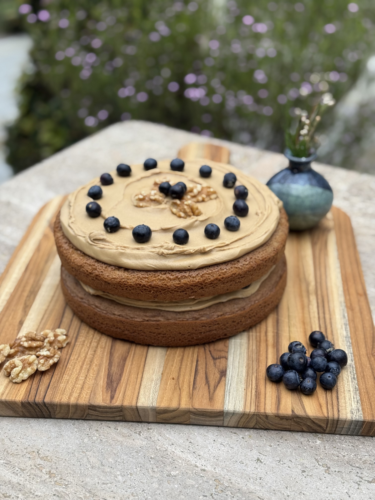 To celebrate our return home after the Palisades Fire (Southern California), my daughter and I spent an afternoon baking, appreciating the comfort and familiarity of our kitchen. This cake was a perfect blend of sweetness and nuttiness. We added blueberries for color. Thank you!