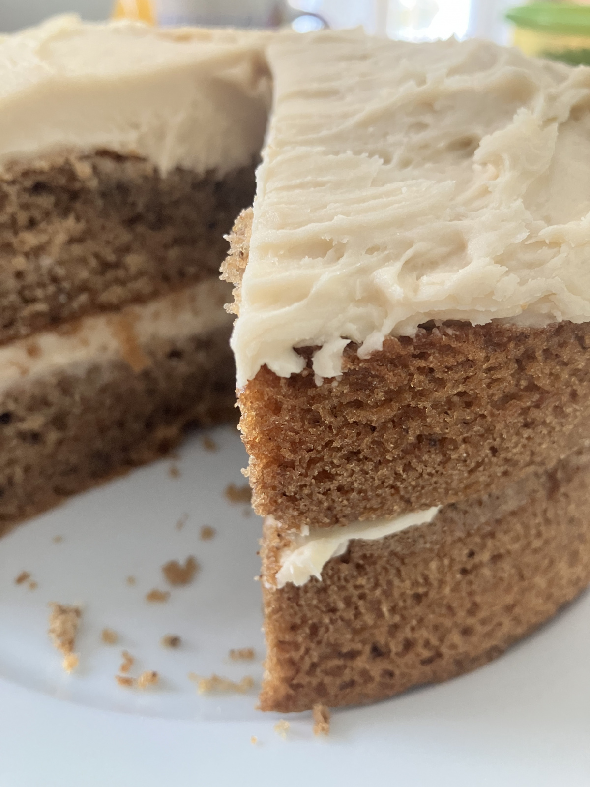 It was impossible to take pictures before we tasted it, even though we did try. Even with being interrupted by children roughly 47 times while making this cake, it turned out great.