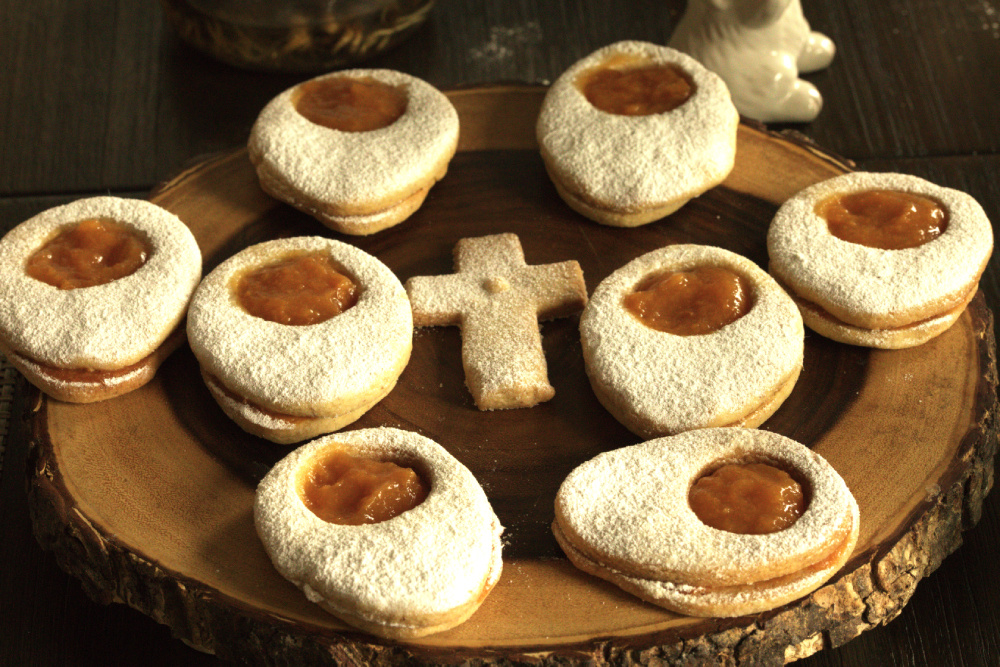 Dear Nigella, Thank you very much for the lovely Easter Egg Biscuits recipe. I enjoyed the taste very much; the almond flour provides a delightful nutty flavor, and apricot jam is my favorite. Instead of store-bought, I used my homemade sugar-free apricot jam. The biscuits turned out wonderfully, and with the leftover dough, I even made some with a cross to complement the Easter symbols.