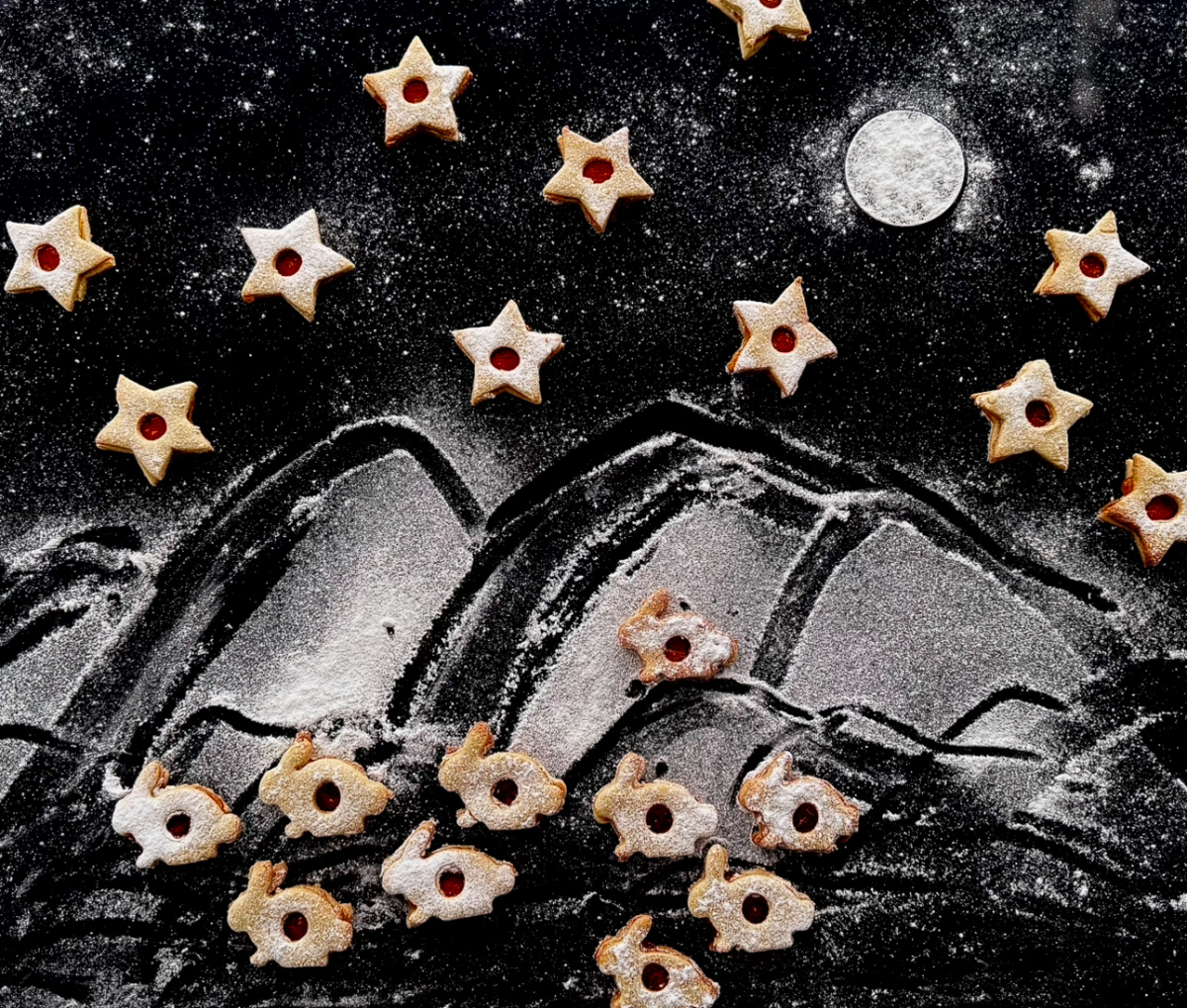 No egg cookies, my Easter bunnies went out at night and hid all the eggs. Great easy to make biscuits, but above all I just had the most stupid amount of fun making a mess with sugar mountains and bunnies. :)