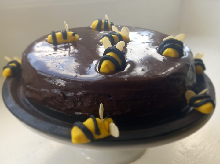 Nigella's Honey and Chocolate cake was perfect choice for Afternoon Tea with my Sister. It was an Act of Faith putting the voluminous liquid batter into the oven and a bit of a mystery how it all came together! A teaspoon of vanilla extract and coffee expresso were only additions ....the Bees definitely enjoyed swimming in a lake of honeyed Chocolate glaze. Perfection.