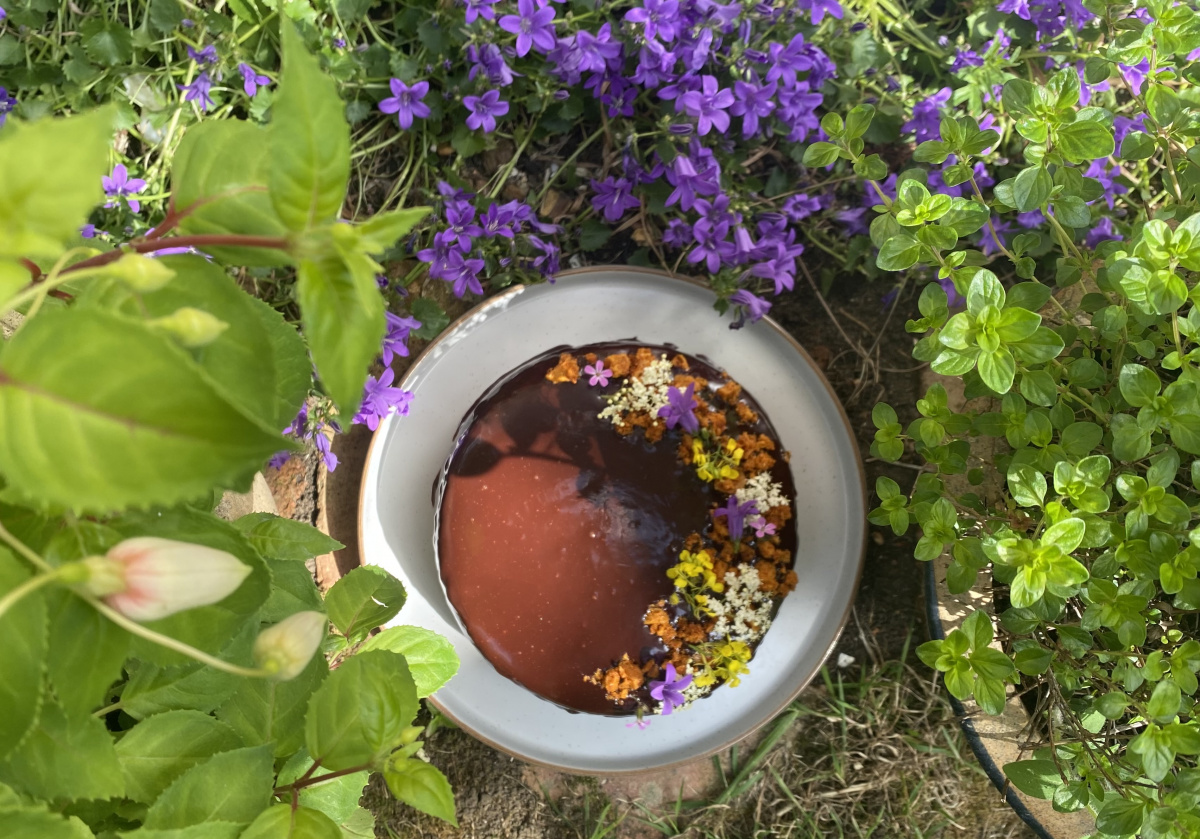 Decorated with bee-friendly blooms from my Mum’s wild garden and Nigella’s Hokey Pokey, this combined my joy of baking and love for nature beautifully. Love the leaf shaped pattern the natural light has created across the cake and think this would make a lovely summer garden wedding cake. A wonderful way to celebrate World Bee Day.