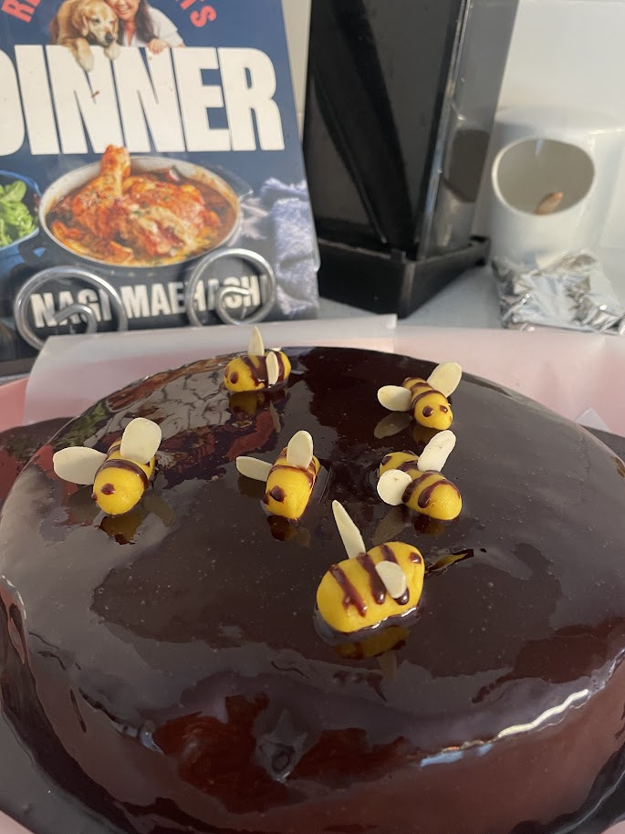 Honey Chocolate cake with little bees. This was made for a biggest morning tea at work, raising money for Cancer Council Australia. I choose the whizzing all together method as I was time poor, it turned out brilliantly and everyone loved it.