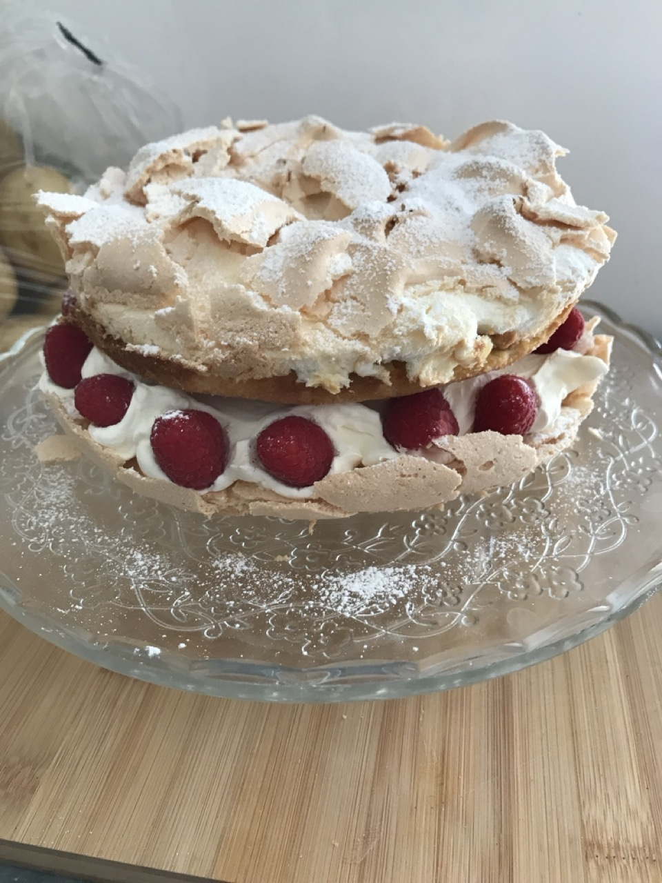 ‘Lemon meringue cake’. Just like Nigella my lemon meringue pie seems to fail miserably, but now also like Nigella, we love this new version lemon meringue cake, full of lemon curd fresh whipped cream and the addition of a few raspberries.