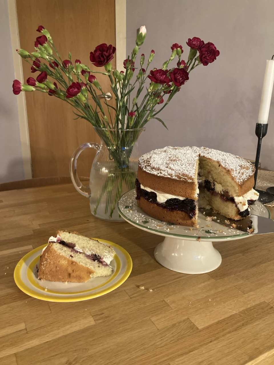 It was my birthday at the weekend and I realised that I have never baked a Victoria Sponge before. I was able to use my mum’s homemade bramble jelly and blackberries for the filling with cream. It was delicious and felt like a nod to the beginning of Autumn!