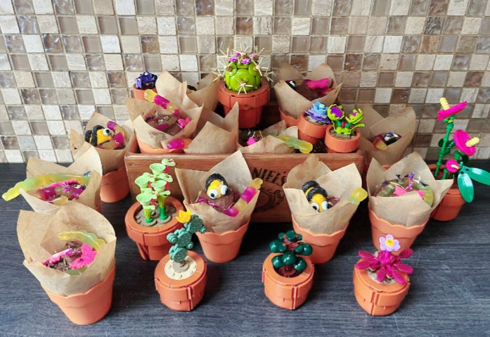 Nigella's Chocolate Chip Muffins baked in Flowerpot cases are perfect choice for my Neice Lottie's Lego Flowers .....a few bumble bees, caterpillars and butterflies snoozing in edible flowers the finishing touch. Tasted wonderful!