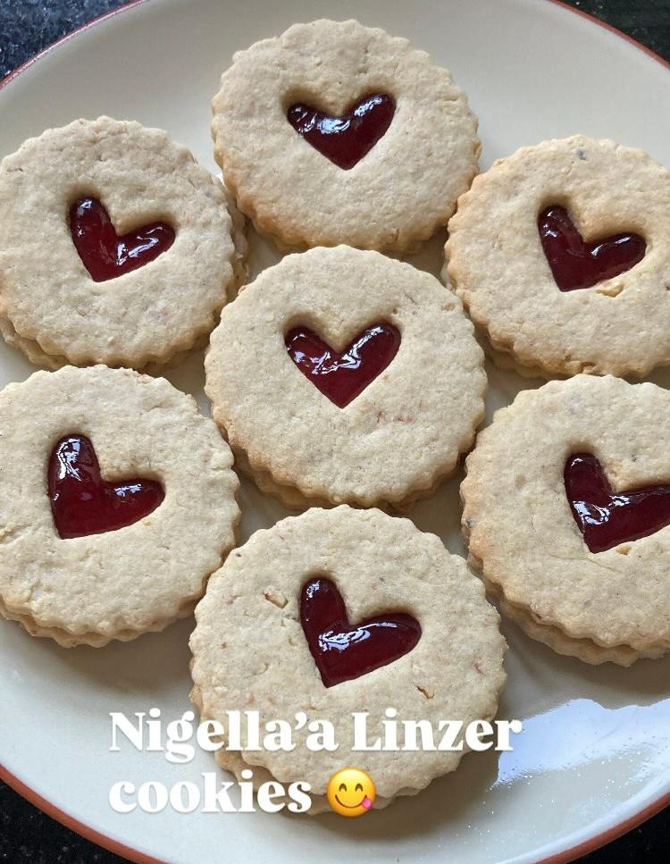 Nigella's Linzer cookies! I cannot wait to bake these cookies at Christmas (as intended) with Christmas shapes but I had to try them out first - delicious!! A biscuit for any season I think. I baked these for my parents' wedding anniversary using hearts. I was amazed how easy the recipe was and how professional they looked - I posted this photo on Instagram and had so many comments. Another Nigella triumph!