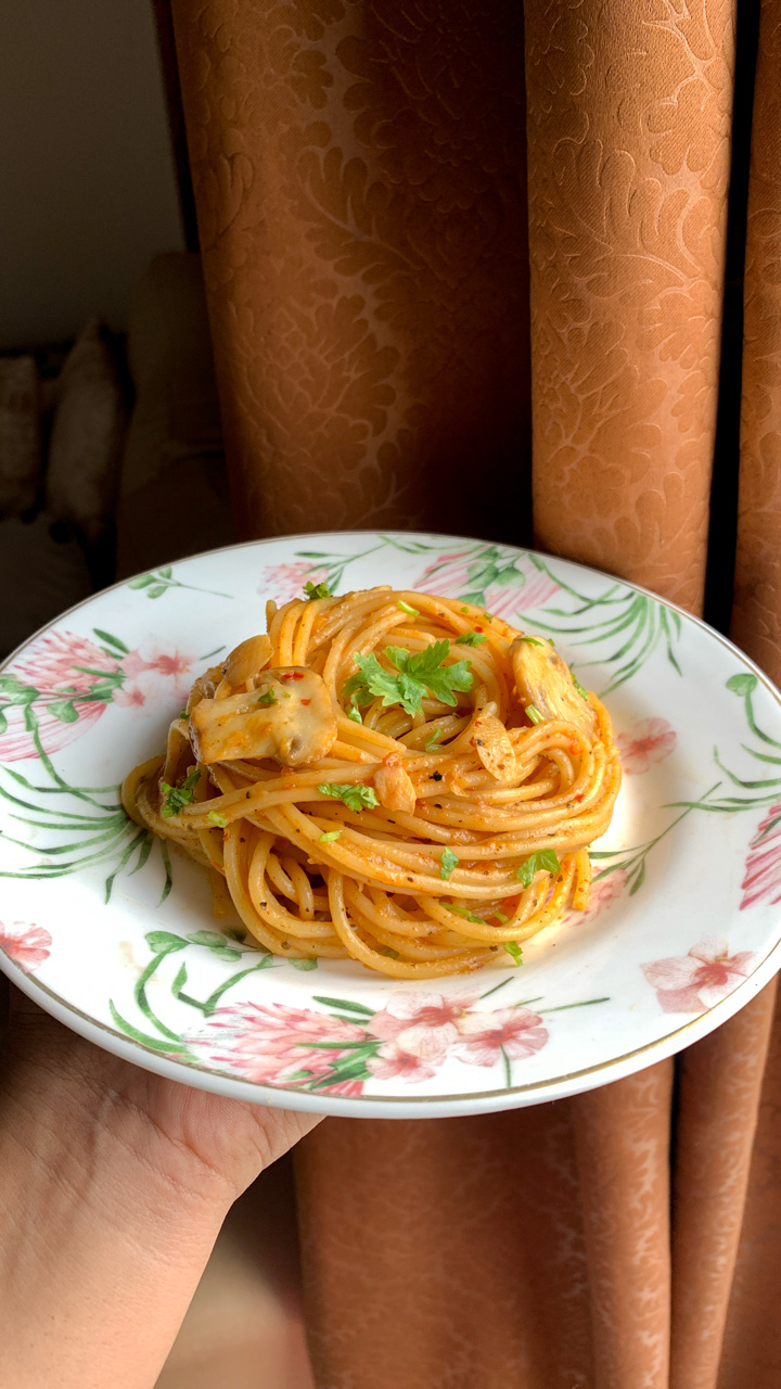 This recipe- spelt spaghetti with spicy sesame mushrooms- is absolutely delicious. I make it every week, or at least every fortnight. It’s so comforting and comes together beautifully and quickly.
