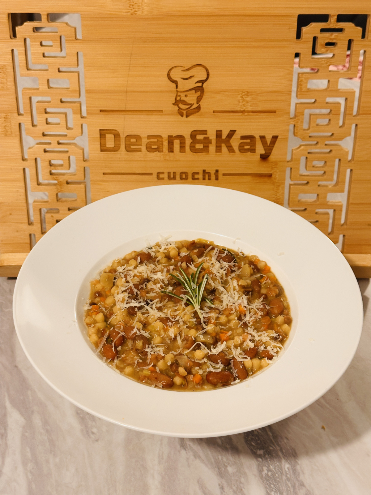 Being as it’s autumn now, we opted for a comforting PASTA E FAGIOLI this month. Perfect for our vegan household!