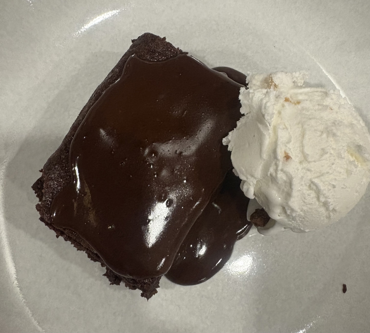 No flour chocolate brownies with hot chocolate sauce. Not only are these gluten free but I made them dairy free too. I omitted the walnuts, due to allergies and added dairy free white and dark chocolate pieces. Yummy.