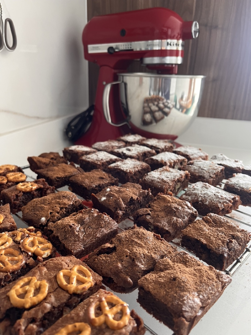 Nigella's original brownie recipe is famous for being fudgy and rich. My variations include pecans (for crunch and nuttiness), pretzels (for that salty-sweet contrast), and coffee (to deepen the chocolate flavor) to elevate it to another level.