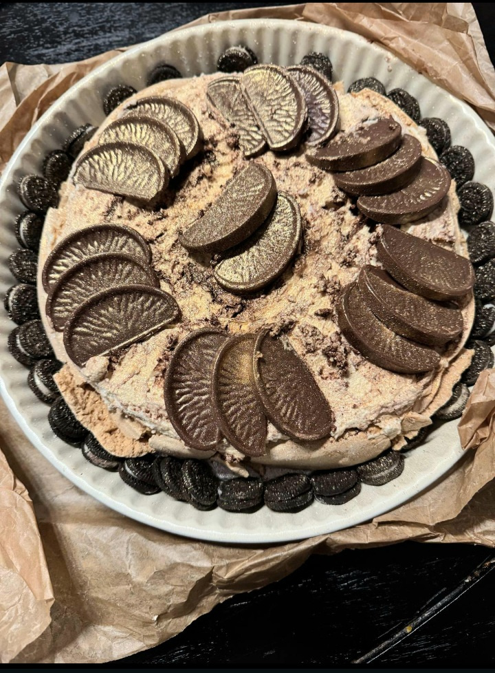 Nigella's Cappuccino Pavlova was perfect for my Brother-in-law's Birthday .... delivered wrapped in baking paper for a rustic scrunch. Added his favourite chocolates with a magical sprinkling of quality cocoa powder for the final flourish.