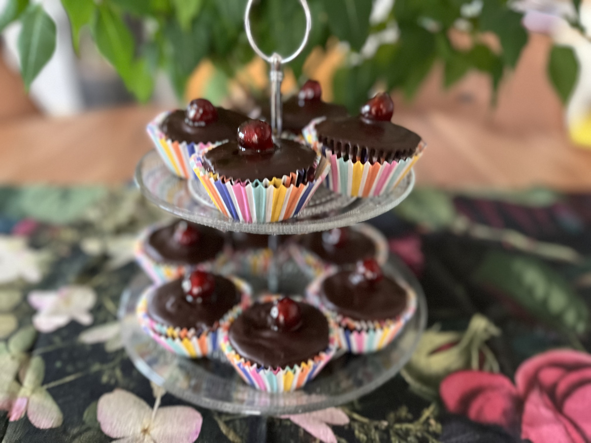 Generally cupcakes do not excite me but these chocolate cherry ones are small portions of delight. Happy chocolaty smiles all around.