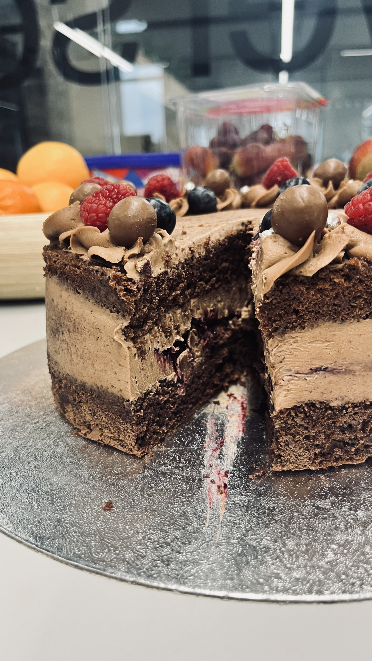 My twist on Nigellas chocolate malteser cake, added some Nutella and peanut butter to the icing as well as sweet and sour homemade blackcurrant jam