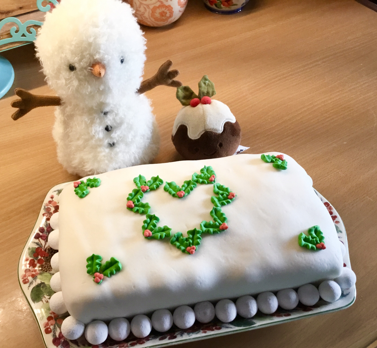 Christmas Loaf Cake I’ve not made a Christmas cake for a good few years now, but this is the perfect size and easily sliceable shape. Marzipan and fondant, then bought chocolate snowball sweeties and a heart of holly berries and leaves. Merry Christmas!