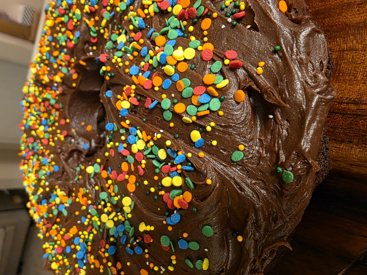 Old Fashioned Chocolate Cake Made Nigella's chocolate cake recipe but opted for a bundt pan. Baked it for 40 minutes at 350 degrees Fahrenheit. Came out perfect and delicious.