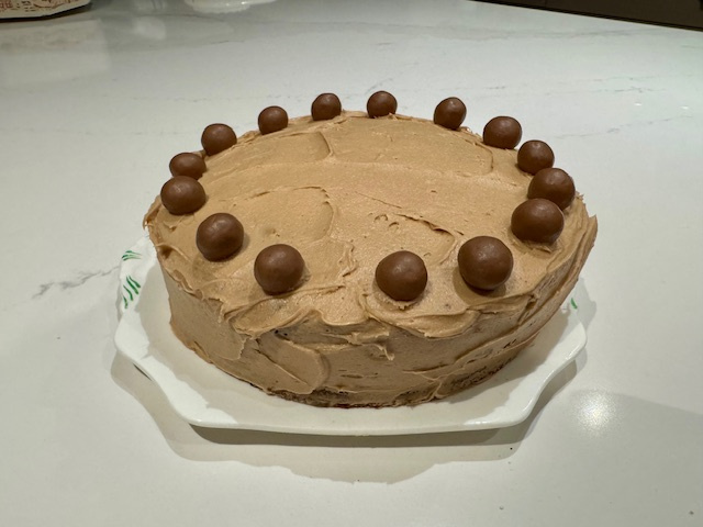 Nigella’s Chocolate Malteser Cake. There was plenty of icing, so I iced the sides as well. A delicious cake, and just that little bit different! I have made this cake a few times, and it never fails to delight.