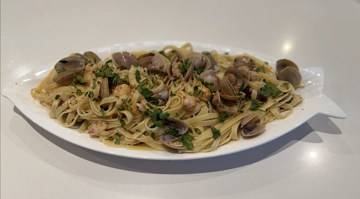 LINGUINE WITH CLAMS Delicious yet a delicate flavour of the sea with these sweet clams. The simple sauce of wine and olive oil is amazingly creamy after emulsifying. I love the combination of garlic, chilli and parsley too. The only proviso I make is to add a little Parmesan (or a lot) even if an Italian will be horrified! And yes I do have Italian in my genes! God bless you Nigella and thank you again!