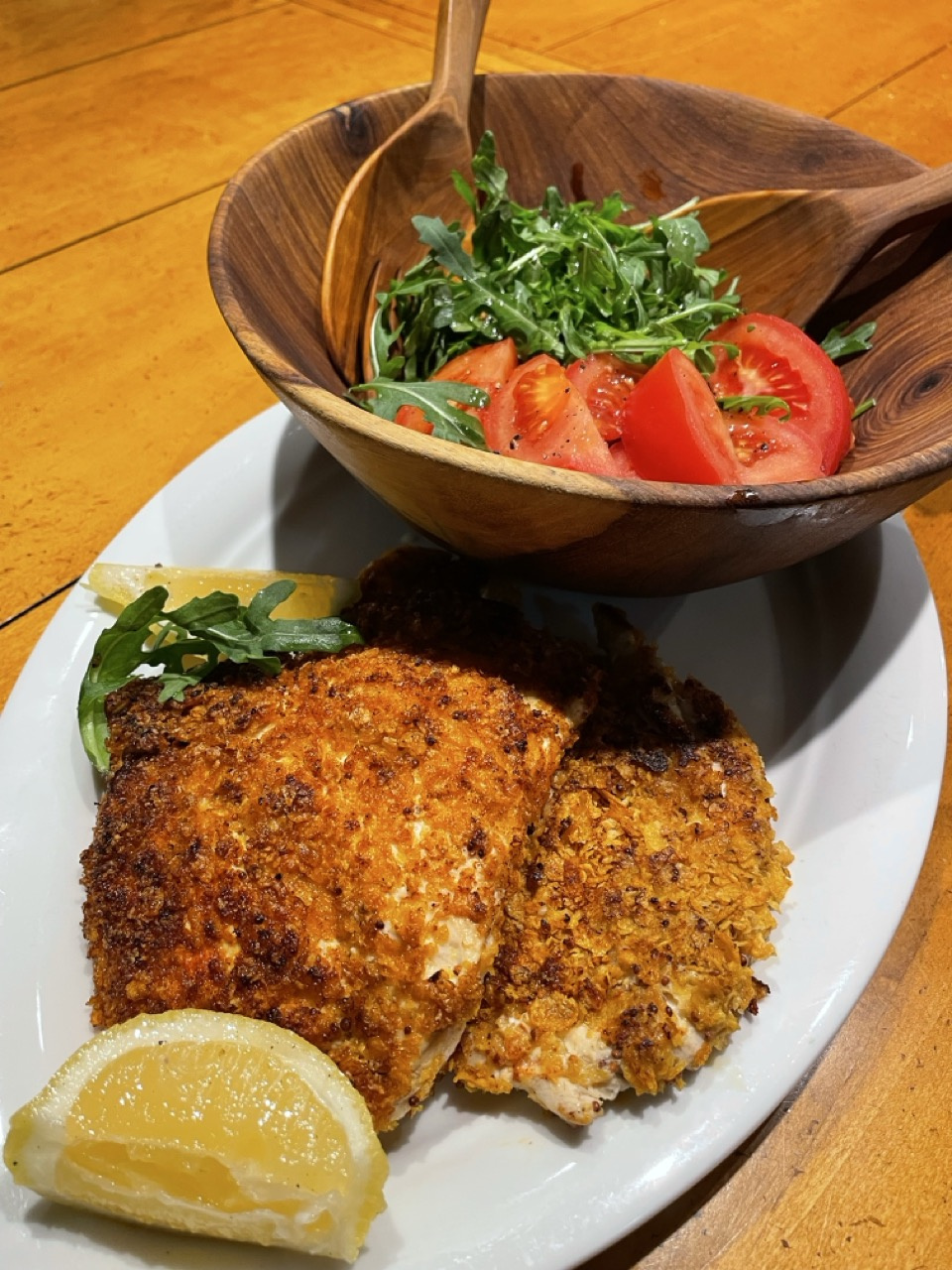 Crunchy Chicken Cutlets from Simply Nigella - cornflakes & chicken, what’s that all about? Had to try this recipe and it turned out great. And I had so much fun pounding chicken & crushing cornflakes!