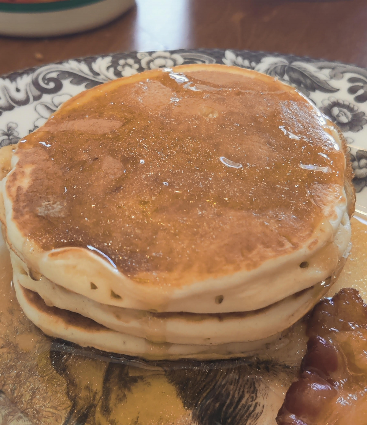 I've been watching Nigella since the early 200o's, especially the series where she is cooking for her children who are just a few years older than my three kiddos. One thing I've kept on hand for many years is Nigella's homemade pancake mix. It's ready to hit the griddle at a moment's notice and we all love it. On New Year's Day, I gilded the lily by topping our breakfast with sparkling pancake syrup! Doesn't everyone want glittery pancakes? (I bet Nigella would!)