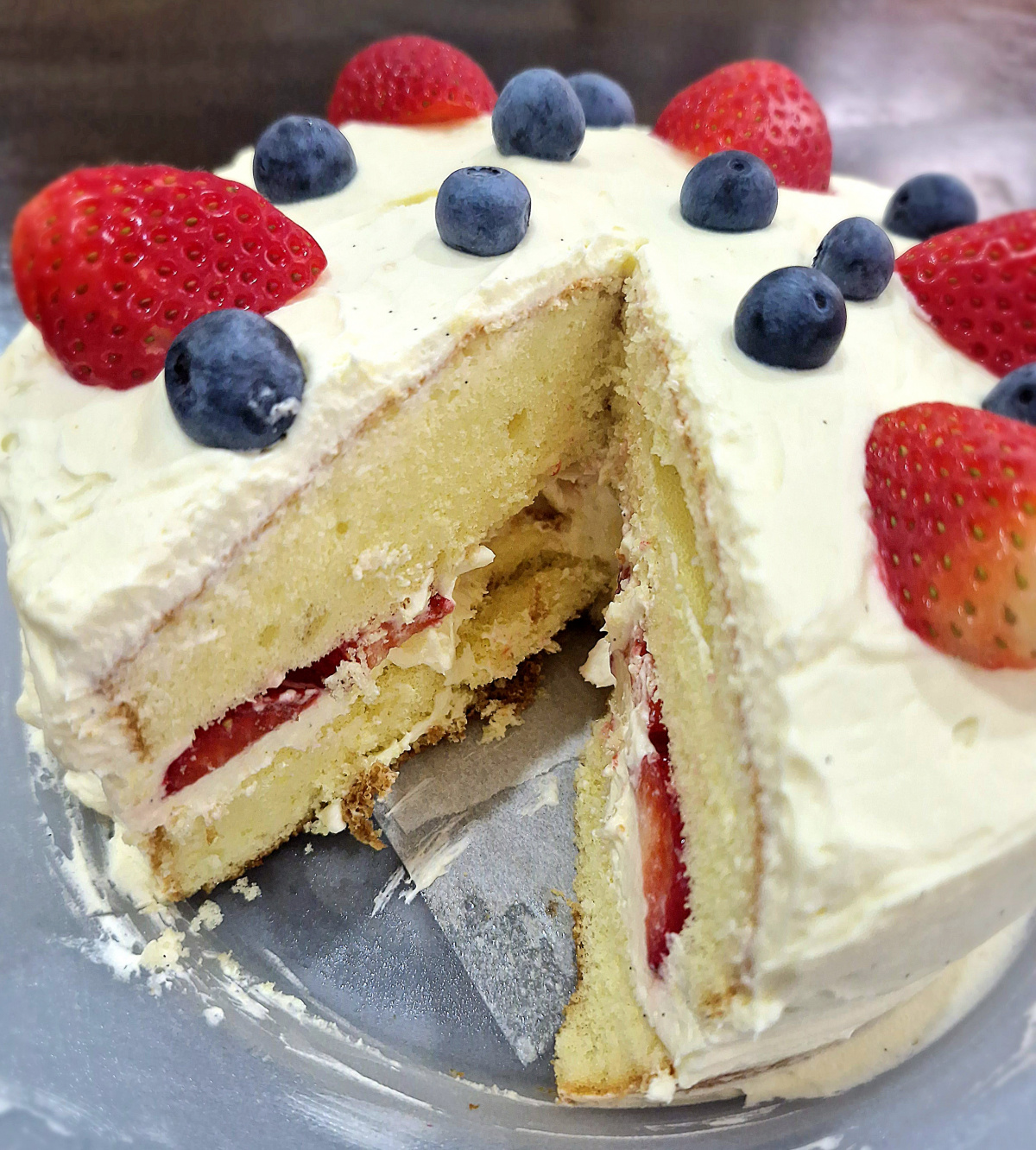 Nigella's Victoria Sponge recipe is a family favourite. It's quick & easy enough to whip up on a weekday and looks & tastes equally impressive for a weekend gathering. We love the simplicity & being able to taste each element, but we do love the cream a little too much perhaps & so we double the amount & smother it on the outside as well as the middle! It's summer in Australia at the moment, so fresh berries in the middle & on top seems only fitting. Beautiful to look at & to eat!
