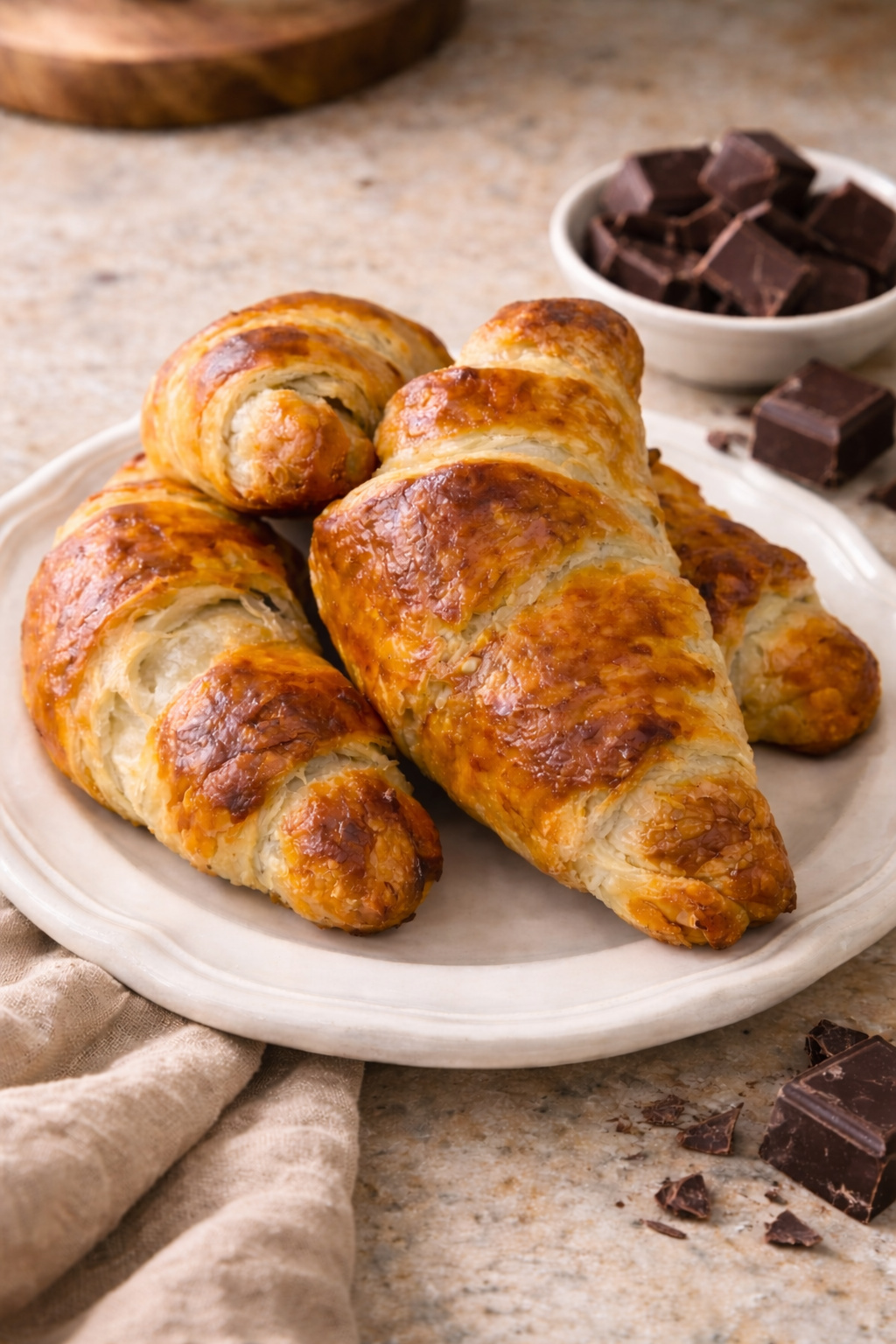 Chocolate Crossiants The aroma wafting through the house is beyond heavenly, especially on a rainy day in the Pacific Northwest. They are almost too pretty to eat, but that won't stop me. Honestly, these were so easy to make and I feel so accomplished as a homebaker after making them.
