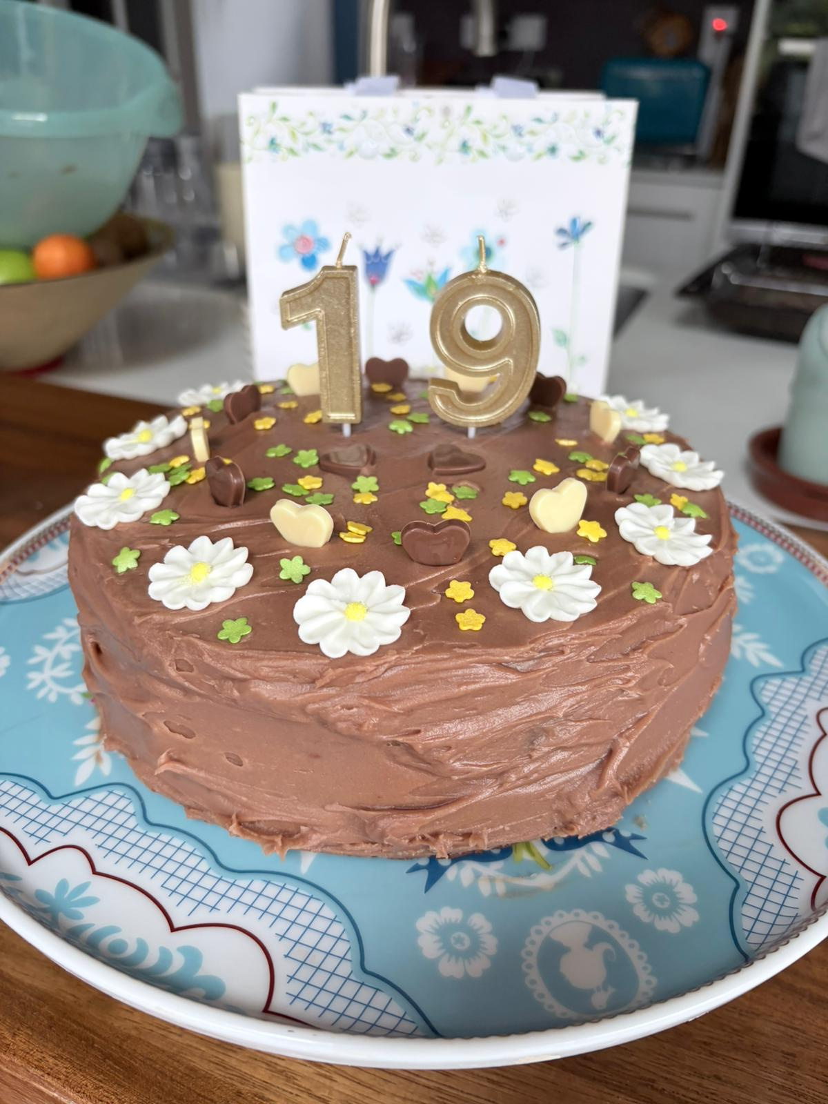 This is my version of the Old Fashioned Chocolate Cake adapted to suit the taste of my daughter Clara whose birthday it was for. She insisted on milk chocolate for the icing as she is adamant that she does not like dark chocolate. I obliged on this occasion and so it does not look as dark brown as it ought to.