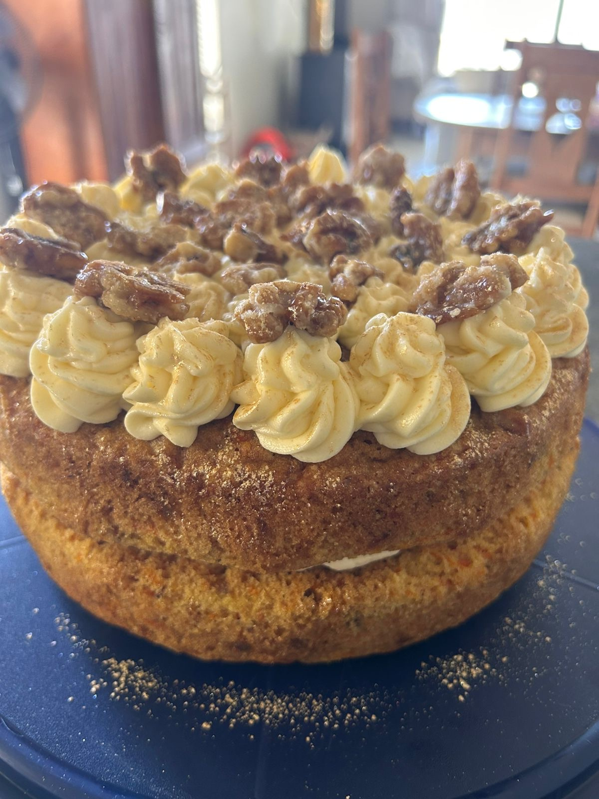 Nigella’s carrot cake with crystallised ginger was this month’s winning recipe. Each bite brought smiles, with the gentle warmth of the ginger adding a delightful and unexpected kick. The addition of candied walnuts on top introduced a touch of extra sweetness. Enjoyed with a cup of tea, it was an absolute treat — not a single crumb was left behind.