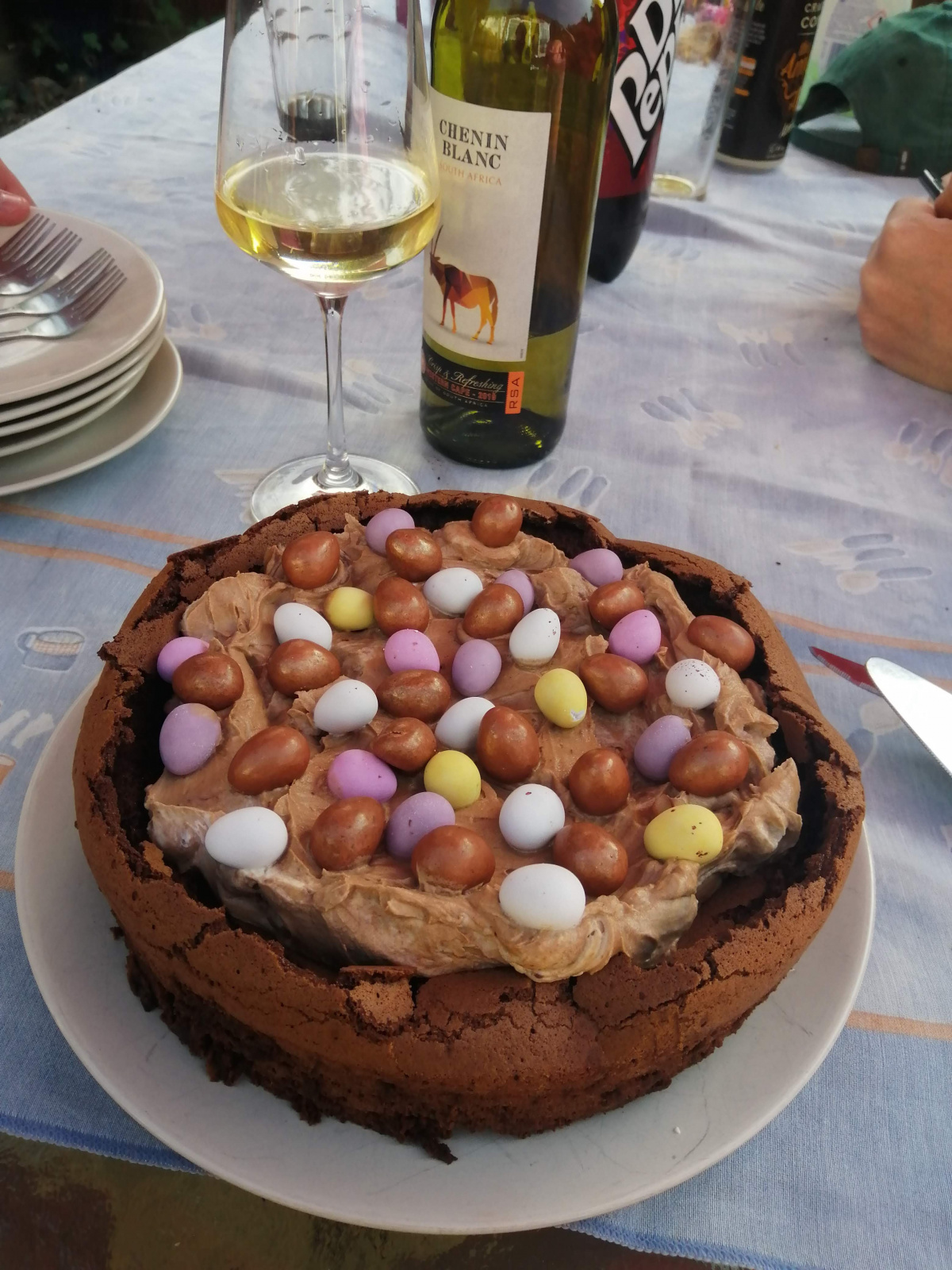 This is the Easter Egg Nest Cake I've made. So rich and unctuous. An absolute crowd pleaser. So delicious. A little bit goes a long way