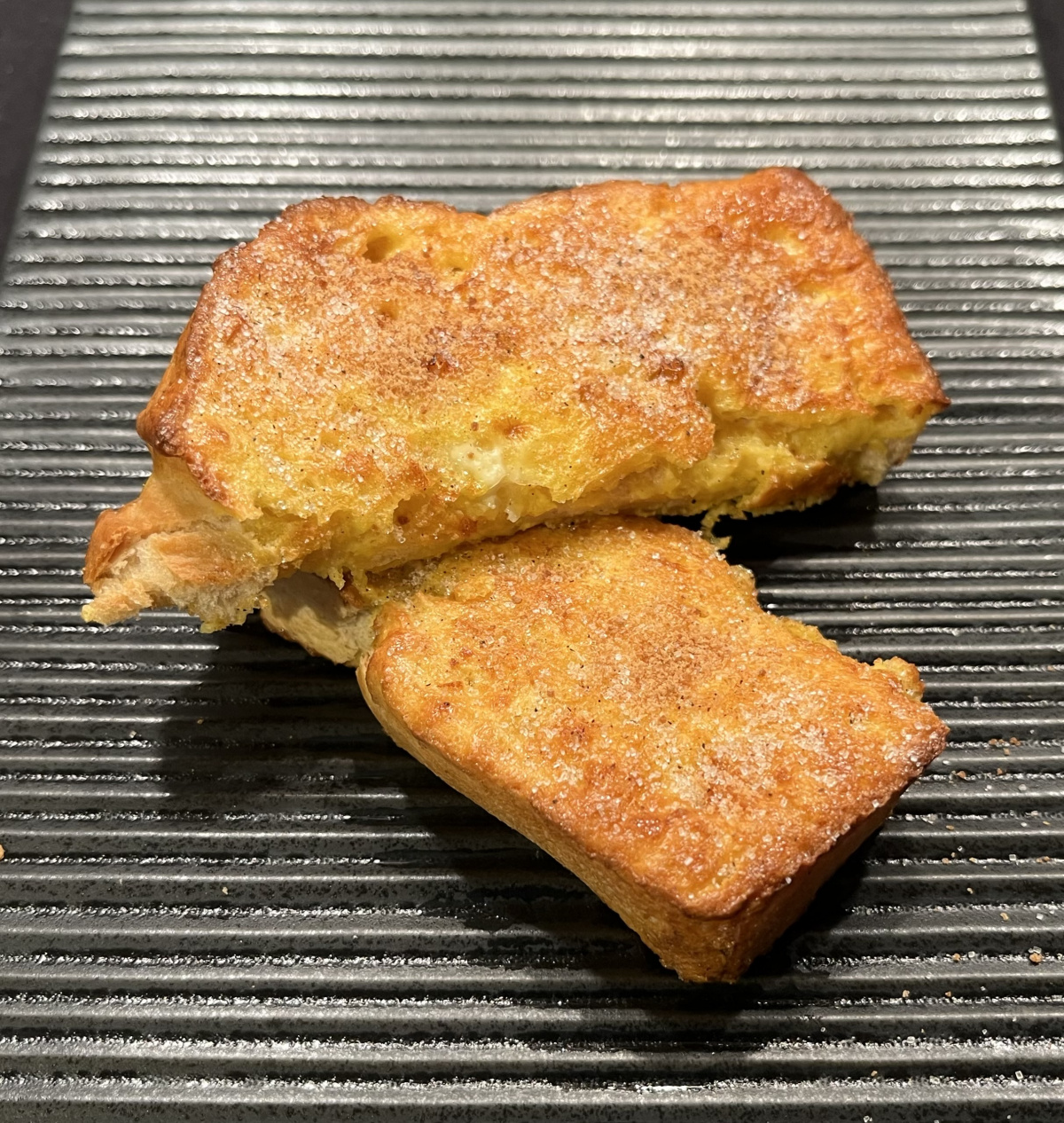 Doughnut French Toast. Made in the Airfryer and sprinkled with a mixture of vanilla and coconut blossom sugar.