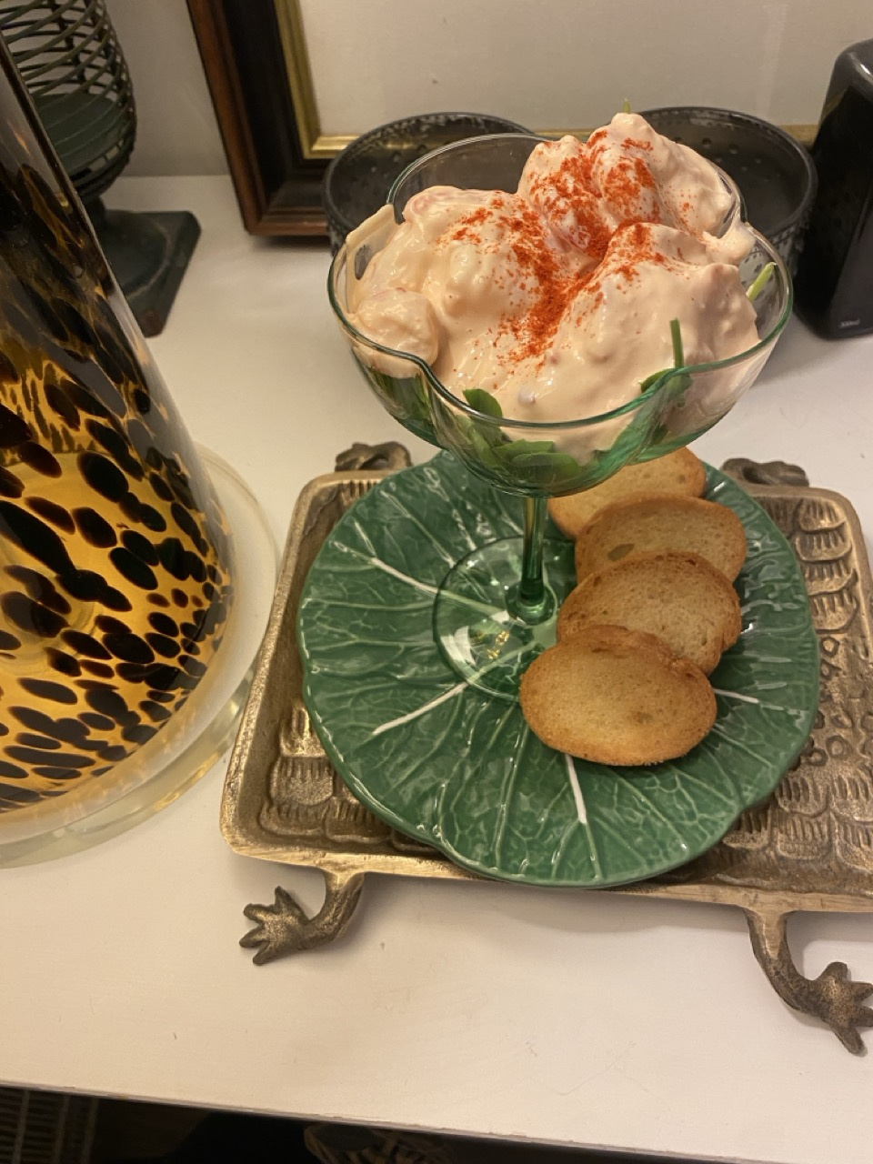 Nigella’s prawn cocktail from her Feast cookbook with a glass of cold bubbles elevates a Friday night!